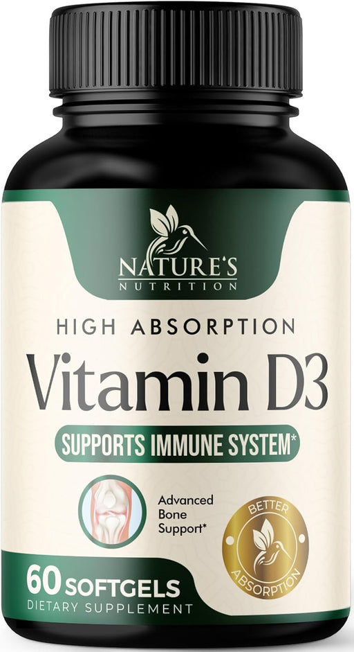 EXTRA STRENGTH D3 VITAMIN 5000 IU: Nature’s Nutrition immune support, bone & heart support with vitamin D3 supplement provides 5000 IU (125 mc...