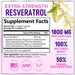 • Resveratrol Supplement 1800mg: Extra strength resveratrol capsules designed to support aging, heart health, cellular energy production and overall wellness for men and women