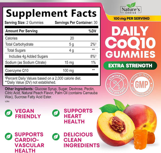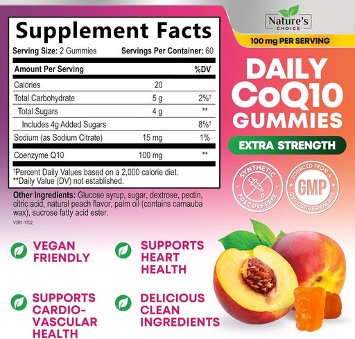 Nature's ChoiceSupport heart health and energy levels with our CoQ10 gummies for adults, delivering 100mg of high absorption coenzyme Q10 in every serving.These d...