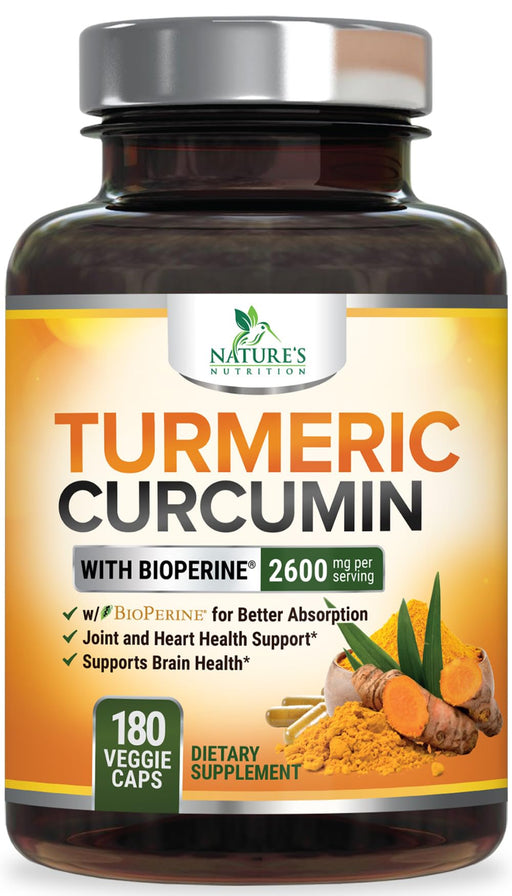 View full detailsTurmeric Curcumin Supplement with BioPerine 95% Curcuminoids 2600mg with Black Pepper for Best Absorption, Bottled in USA, Best Natural Vegan Joint Support, Nature's Non-GMO Tumeric - 180 Capsules