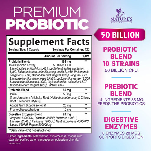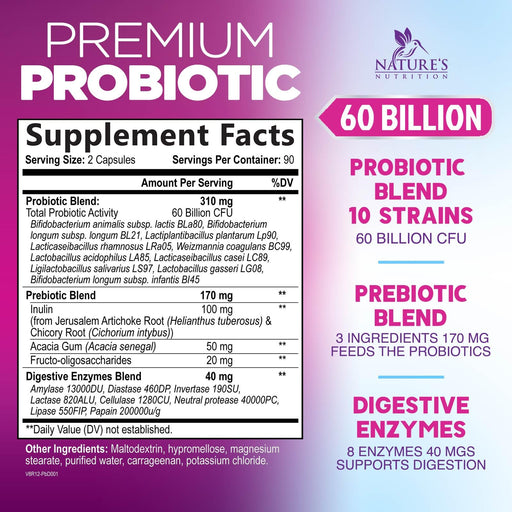 Nature's NutritionSupport your digestive health with our premium 60 Billion CFU Probiotic, expertly formulated for both women and men. Each serving combines 10 diver...
