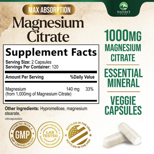 Nature's PeakUnlock the full benefits of Nature's Peak Magnesium Citrate Extra Strength 1000 mg supplement. A premium, high-absorption magnesium supplement desi...