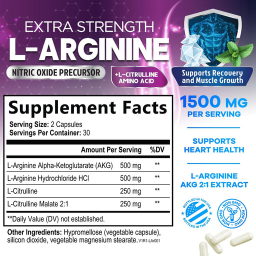 View full detailsL-Arginine 1000mg Supplement - Heart Health Support - Premium Muscle Supporting Nitric Oxide Precursor Booster for Extra Strength - Gluten Free, Amino Acid Energy Blend For Men & Women - 60 Capsules