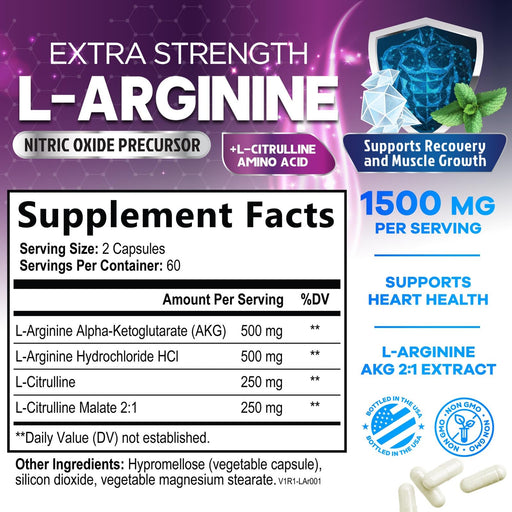 View full detailsL-Arginine Supplement 1000mg with L-Citrulline - Heart Health Support - Muscle Supporting Nitric Oxide Precursor Booster for Extra Strength - Non-GMO Amino Acid Energy Blend For Men - 60 Capsules