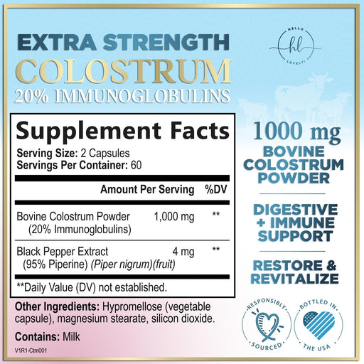 Hello Lovely!Discover the best colostrum supplement for women and men - Hello Lovely! Colostrum 1000mg with 20% Immunoglobulins. These premium colostrum powder ...