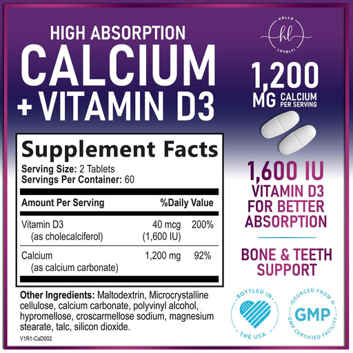 Hello Lovely!Support bone and immune health with our Calcium Supplements for Women, delivering 1200 mg of calcium carbonate and 1600 IU of Vitamin D3 per servin...