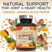 Health Nutrition Natural's Turmeric Curcumin Supplement delivers 2600mg of tumeric, ginger, and 95% standardized curcuminoids for joint support and overall wellness. Our turmeric curcumin capsules are enhanced with BioPerine and ginger, making it a superior turmeric black pepper supplement for optimal absorption. This vegan, non-GMO curcumin supplement is made with high-quality, plant-based ingredients. Each tumeric pill is bottled in the USA under strict GMP standards and is third-party tested for purity. Designed to support joint health, these curcuma capsules offer reliable, daily joint support. Experience the benefits of turmeric pills and curcumin supplements to support your overall health and an active lifestyle.