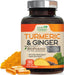 Turmeric Curcumin Supplement 2600mg - with Organic Ginger & Turmeric, 95% Curcuminoids, BioPerine Black Pepper for Best Absorption, Nature's Vegan Joint Support, Non-GMO, Bottled in USA - 180 Capsules