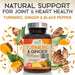 Health Nutrition Natural's Turmeric Curcumin Supplement delivers 2600mg of tumeric, ginger, and 95% standardized curcuminoids for joint support and overall wellness. Our turmeric curcumin capsules are enhanced with BioPerine and ginger, making it a superior turmeric black pepper supplement for optimal absorption. This vegan, non-GMO curcumin supplement is made with high-quality, plant-based ingredients. Each tumeric pill is bottled in the USA under strict GMP standards and is third-party tested for purity. Designed to support joint health, these curcuma capsules offer reliable, daily joint support. Experience the benefits of turmeric pills and curcumin supplements to support your overall health and an active lifestyle.