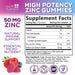 Zinc Supplement 50mg Gummies for Adults - Max Strength Skin Health & Immune Support Gummy, Vegan, Non-GMO & Gluten Free, Nature’s Antioxidant & Bone Health Chewable Tasty Berry Flavor - 60 Gummies