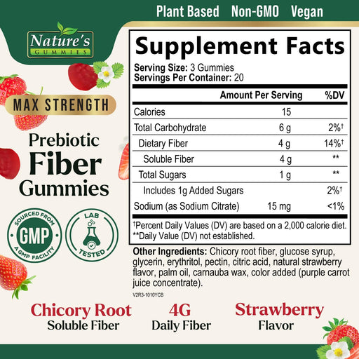 Nature's GummiesNature's Gummies presents the best fiber supplement for those looking to support their digestive well-being. Each gummy delivers a potent 4 grams o...