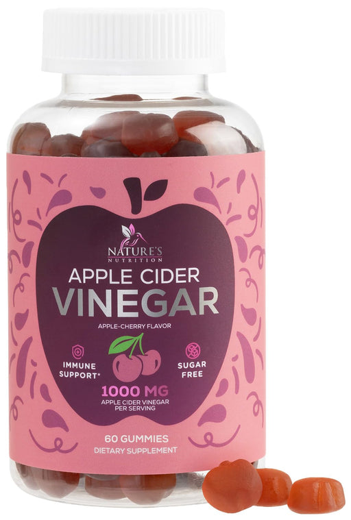 View full detailsApple Cider Vinegar Gummies for Weight Loss 1000mg - Vegan Apple Vinegar Gummy for Detox & Cleanse, ACV Supplement Pills, Vitamin B12, Sugar Free ACV Gummy, Non-GMO, Nature's Nutrition - 60 Gummies
