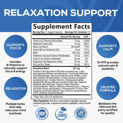 View full detailsNatural Calm, Unwind & Relax Support with Ashwagandha, GABA, Magnesium, 5-HTP, L-Theanine & B Vitamins, Natural Focus, Energy & Immune Support - Nature's Non-GMO, Vegan, Gluten Free - 60 Capsules