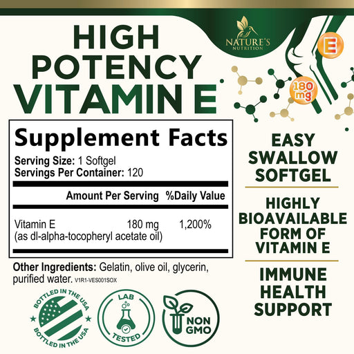 Nature's NutritionSupport your health with Nature’s Nutrition Vitamin E 400 IU Softgels, a powerful e vitamin supplement designed for maximum absorption. Each softge...