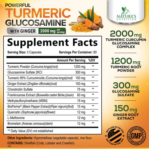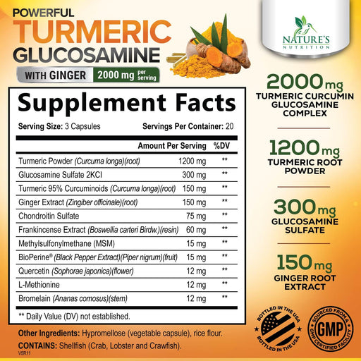 Nature's NutritionNature's Nutrition Turmeric Curcumin Supplement delivers 2000mg of tumeric, ginger, glucosamine, chondroitin and 95% standardized curcuminoids for ...