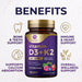 The Power of D3 K2 for Bone & Heart Health Support Support your body the right way with our high-potency D3 and K2 supplement. Designed for maximum absorption, this premium formula combines Vitamin D3 (cholecalciferol) and Vitamin K2 (MK7) to help your body use calcium correctly to support bone & heart health. Why Choose Our D3K2 Supplement? Bone & Heart Health Support – Vitamin D3 helps your body absorb calcium, while K2 directs it to your bones for maximum support. Fast-Absorbing, High-Potency Formula – Each chewable tablet delivers 5000 IU of D3 vitamin and 100 mcg of K2. Tasty & Easy to Take – No more swallowing large pills! Enjoy a delicious berry-flavored chewable packed with your daily serving of Vitamin D3 K2. Trusted Formula – Third-party tested and free from GMOs, gluten, soy, and fillers, so you get only the best.