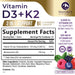 The Power of D3 K2 for Bone & Heart Health Support Support your body the right way with our high-potency D3 and K2 supplement. Designed for maximum absorption, this premium formula combines Vitamin D3 (cholecalciferol) and Vitamin K2 (MK7) to help your body use calcium correctly to support bone & heart health. Why Choose Our D3K2 Supplement? Bone & Heart Health Support – Vitamin D3 helps your body absorb calcium, while K2 directs it to your bones for maximum support. Fast-Absorbing, High-Potency Formula – Each chewable tablet delivers 5000 IU of D3 vitamin and 100 mcg of K2. Tasty & Easy to Take – No more swallowing large pills! Enjoy a delicious berry-flavored chewable packed with your daily serving of Vitamin D3 K2. Trusted Formula – Third-party tested and free from GMOs, gluten, soy, and fillers, so you get only the best.