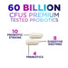 Nature’s Peak best probiotic delivers 60 billion CFU with 10 powerful strains, plus digestive enzymes and prebiotics for complete digestive health. This probiotic supplement is designed for both men and women, making it one of the best probiotics for gut health, immune support, and probiotics for women's digestive health. Our lactobacilli probiotic blend helps relieve occasional bloating, gas, constipation, and diarrhea, making it a top choice in probiotic nutritional supplements. The delayed-release probiotic pills ensure survival through the stomach for maximum effectiveness. No refrigeration needed. Bottled in the USA, our womens health probiotic is non-GMO, dairy-free, soy-free, and gluten-free. Whether you need probiotics for women, prebiotics and probiotics for women, or a women probiotic, Nature’s Peak has you covered.