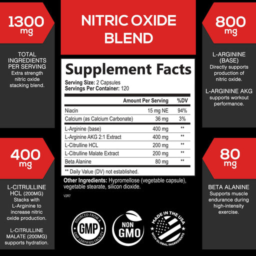 View full detailsExtra Strength Nitric Oxide Supplement 3X Strength L Arginine, Citrulline Malate, AAKG, Beta Alanine - Premium Muscle Supporting Nitric Booster - Natural Energy & Heart Health Support - 120 Capsules