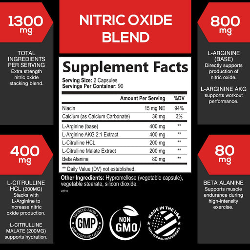 View full detailsExtra Strength Nitric Oxide Supplement 3X Strength L Arginine, Citrulline Malate, AAKG, Beta Alanine - Premium Muscle Supporting Nitric Booster - Natural Energy & Heart Health Support - 180 Capsules