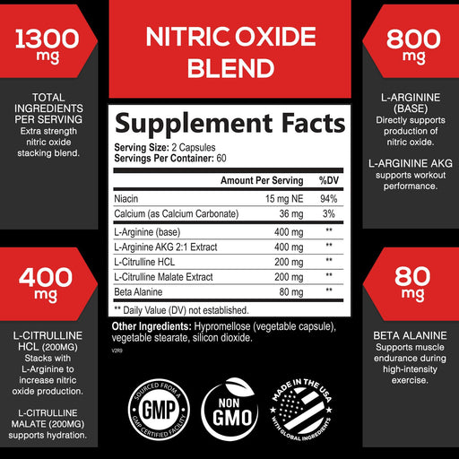 View full detailsExtra Strength Nitric Oxide Supplement 3X Strength L Arginine, Citrulline Malate, AAKG, Beta Alanine - Premium Muscle Supporting Nitric Booster - Natural Energy & Heart Health Support - 60 Capsules