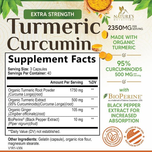 Nature's NutritionEXTRA STRENGTH TURMERIC SUPPLEMENT: Our premium T3 Turmeric Curcumin Complex 2000mg; with 95% Curcuminoids and Organic Turmeric, plus BioPerine bl...